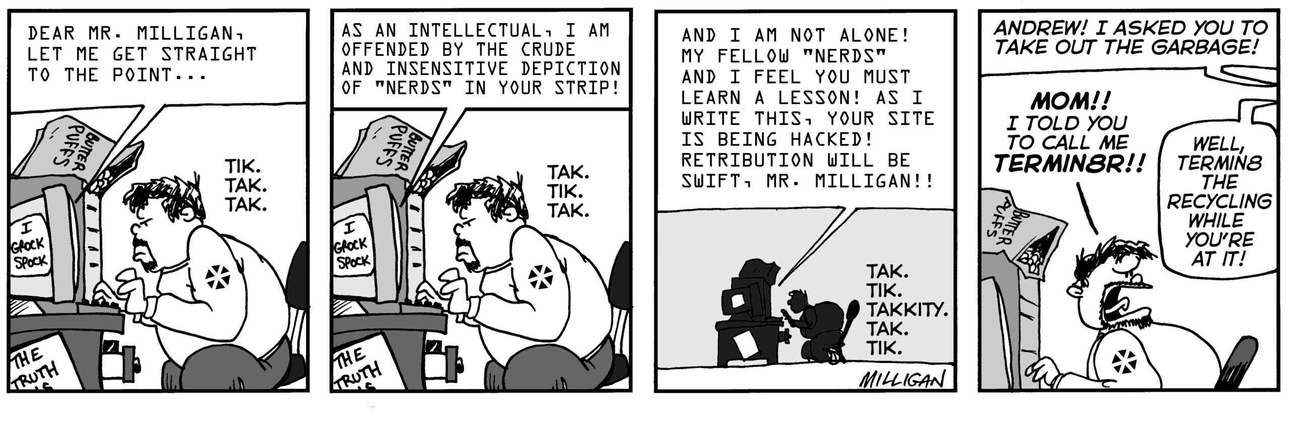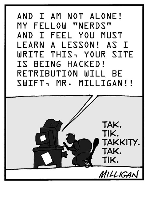 When I posted this strip, I messed up the front page of my site as if it had really been hacked! We have fun.